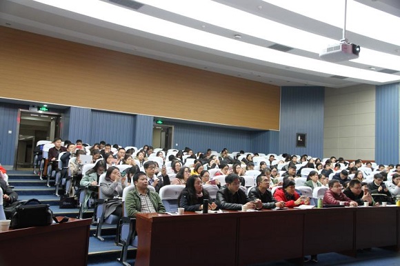 王维平教授重点围绕“新发展理念的内涵解析”“现代化经济体系建设”两个板块进行了解读。他首先从概念的界定切入,梳理了我们党关于发展理念的历史演进,从新发展理念的特征、五大发展理念之间的关系、针对的五对矛盾和五大问题、具体内涵和诉求等方面揭示了新发展理念的科学内涵、精神实质与实践要求。关于现代化经济体系建设,他从现代化经济体系的概念、框架、内涵、任务目标等方面进行了系统阐述,重点围绕推进供给侧结构性改革、市场决定性作用与全面深化改革推进建设现代化经济体系展开论述,用翔实的数据和图文资料带领大家回顾了改革开放以来我国经济建设取得的巨大成就,强调我国经济必须由高速增长阶段转向高质量发展阶段,下大力气解决“大而不强”“快而不优”的阶段性问题,建设现代化经济体系是跨越关口的迫切要求和我国发展的战略目标。在两个半小时的报告中,王维平教授以深厚的理论功底和渊博的学识见解为师生们带来一场思想上的学术盛宴,现场气氛热烈。